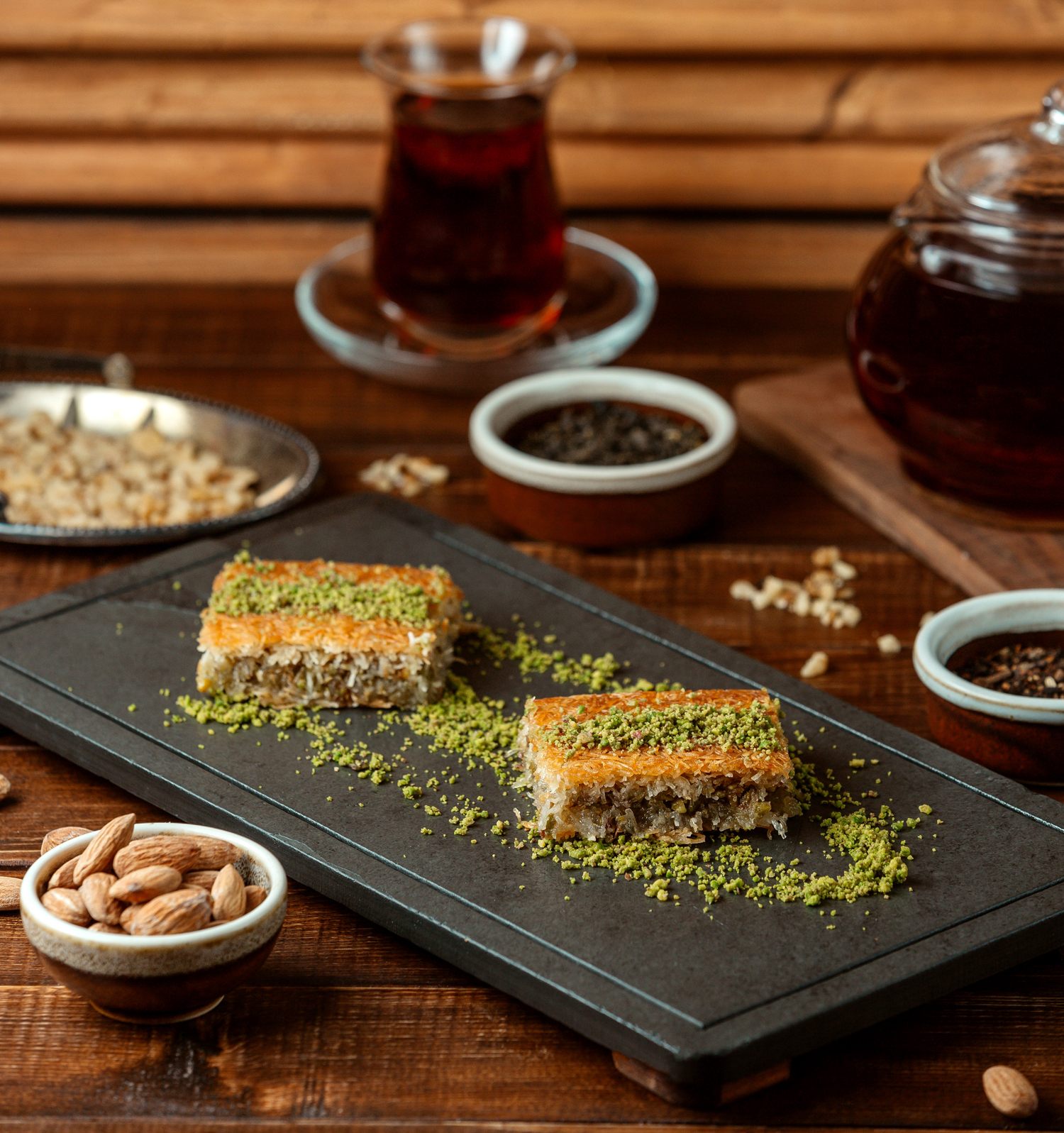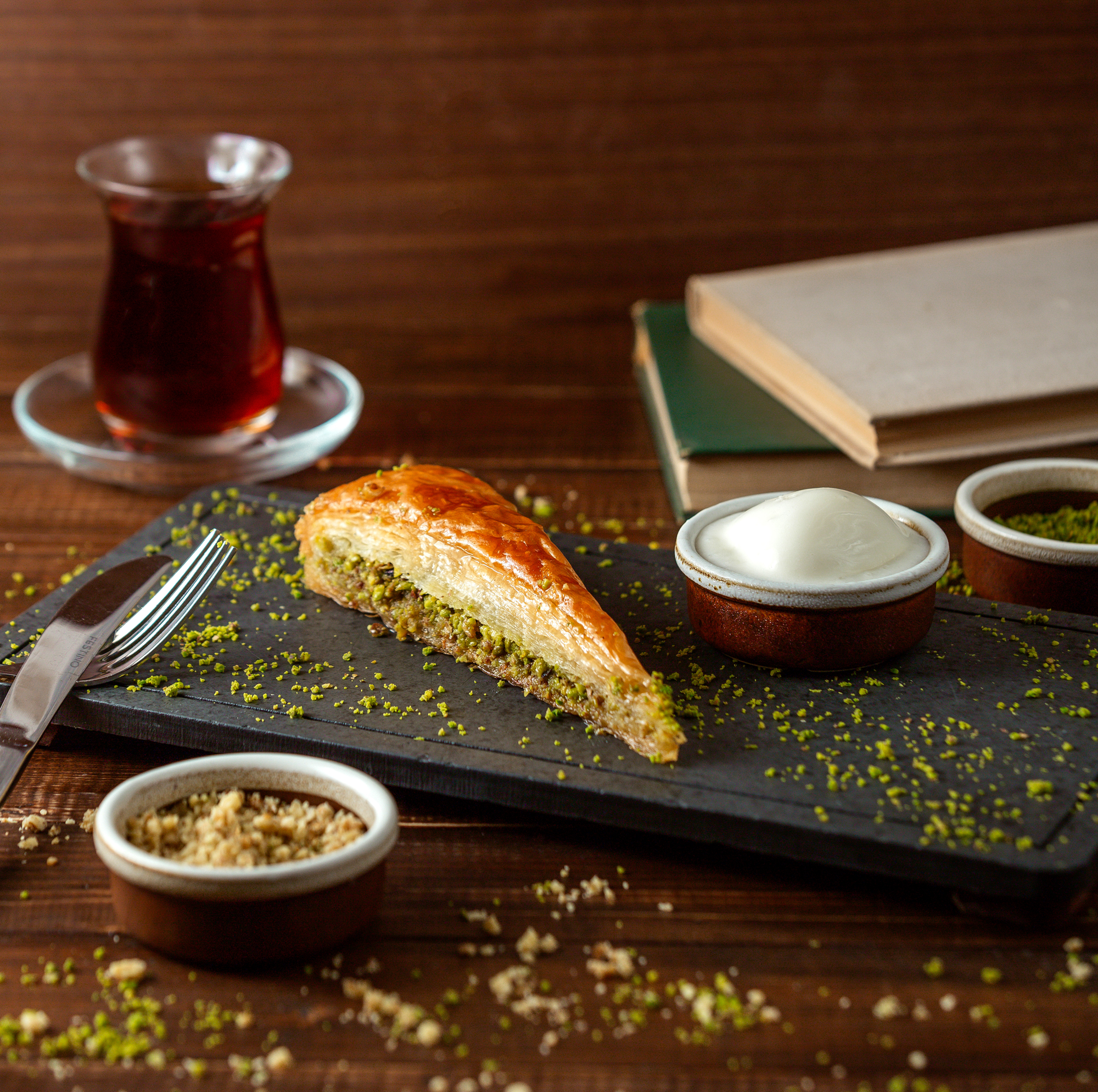 Baklava ist mehr als ein Dessert – es ist Tradition. Seine Wurzeln liegen im Osmanischen Reich, doch die wahre Kunst stammt aus Gaziantep, der Heimat feinster Pistazien. Dort werden hauchdünne Teigschichten von Hand ausgerollt, gefüllt und mit goldenem Sirup veredelt. Seit Jahrhunderten begeistert dieses Meisterwerk Generationen. In Wien bringen wir diese Handwerkskunst auf den Teller – mit hausgemachter Baklava nach Gazianteper Tradition.